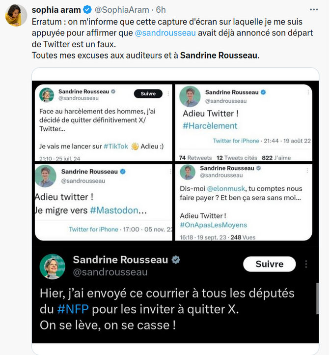 Le reste de l’écosystème médiatique s’emballe, sur X, mais aussi sur d’autres grands médias d’information tels que France Inter (Sophia Aram) ou France 2 (Philippe Vandel, Télématin) pour discréditer la démarche de la députée jugée non crédible.